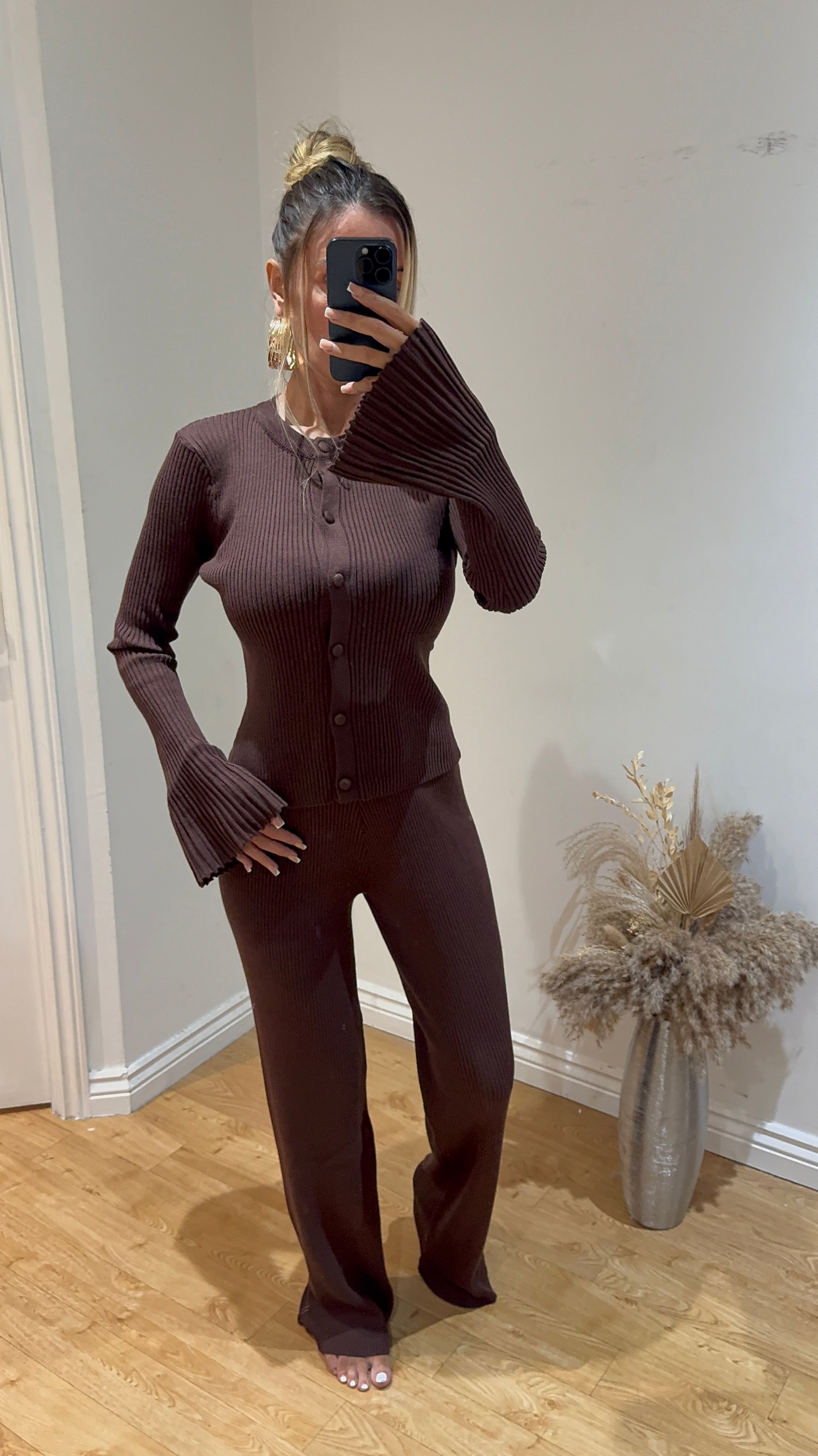 Turn heads this season with our Detachable Fur Collar Knitted Co-Ord, designed to keep you warm while serving elevated style. Made from a soft, cozy knit, this co-ord set features statement flared sleeves and a luxe detachable faux fur collar for versatile styling. Choose to wear it with the collar for a glamorous, winter-ready look, or without for a sleek, casual vibe. The rich autumnal shades make it a wardrobe must-have ā perfect for coffee dates, city strolls, or chic evening outings. Effortless comfort meets statement style.